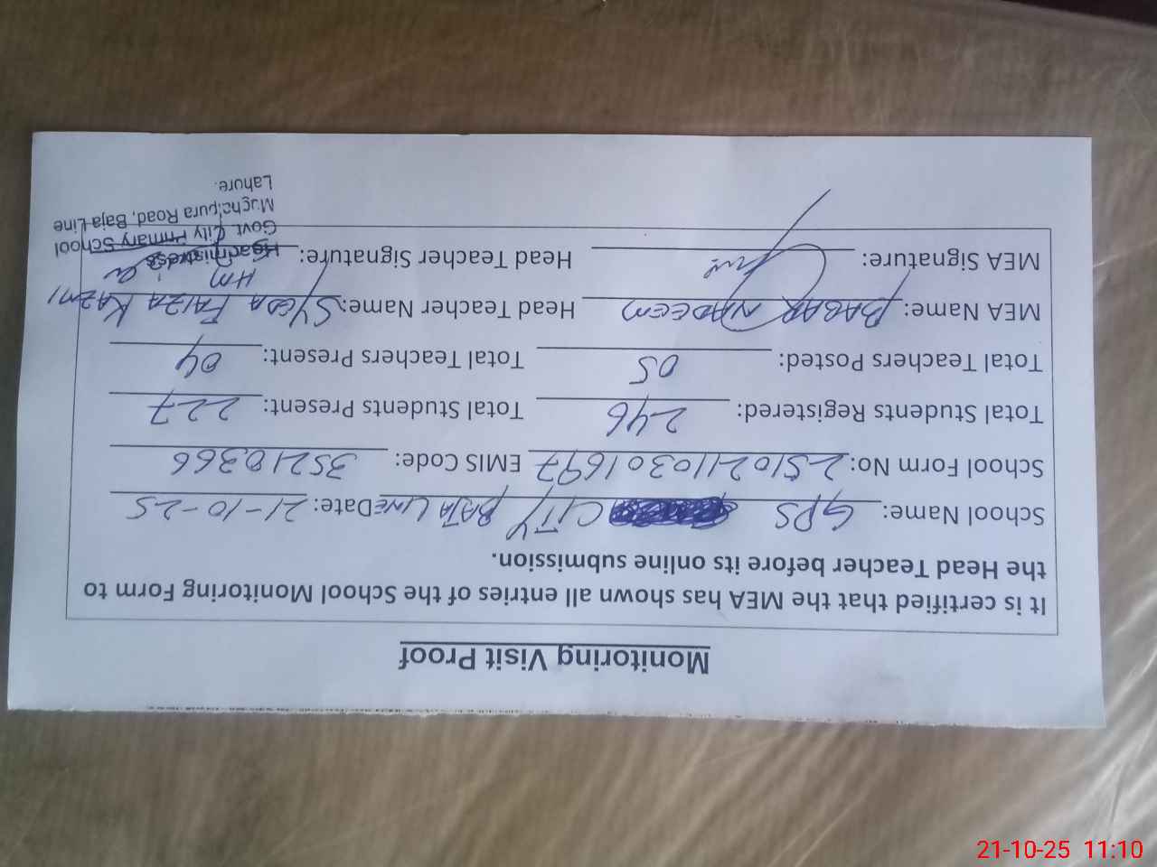 | EMIS Code: 35210366 | Name of School: GPS CITY BAJA LINE | |||