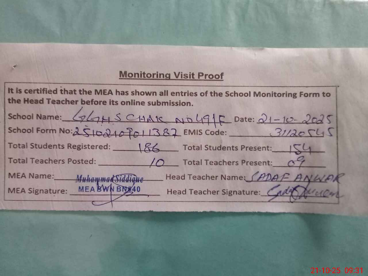 | EMIS Code: 31120545 | Name of School: GGHS CHAK NO. 49/F | |||
