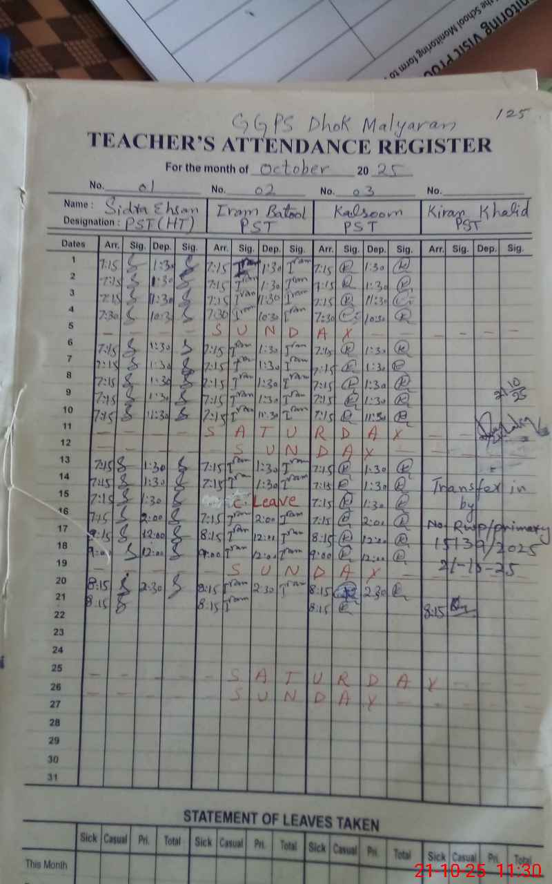 | EMIS Code: 37340095 | Name of School: GGPS DHOK MALLARIAN | |||