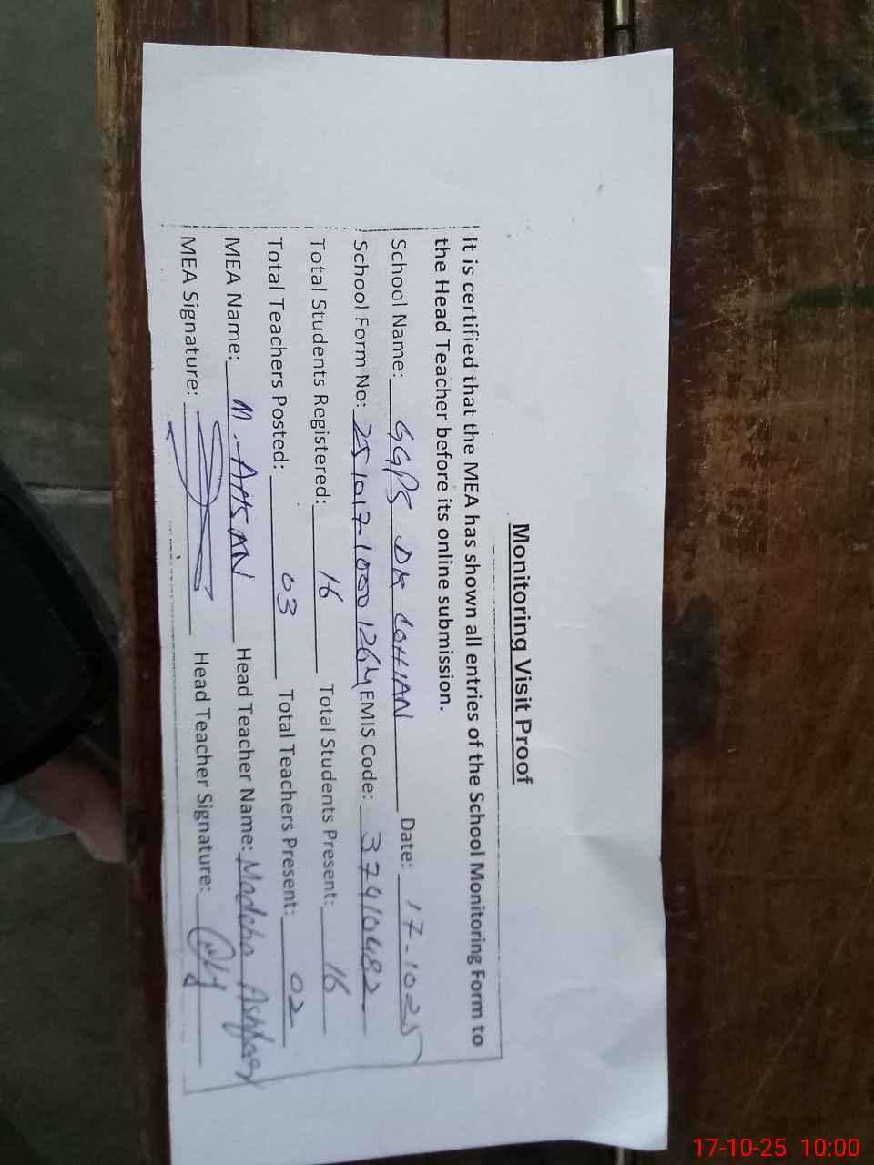 | EMIS Code: 37410482 | Name of School: GGPS DHOK LUHIAN MUREED CHAKWAL | |||