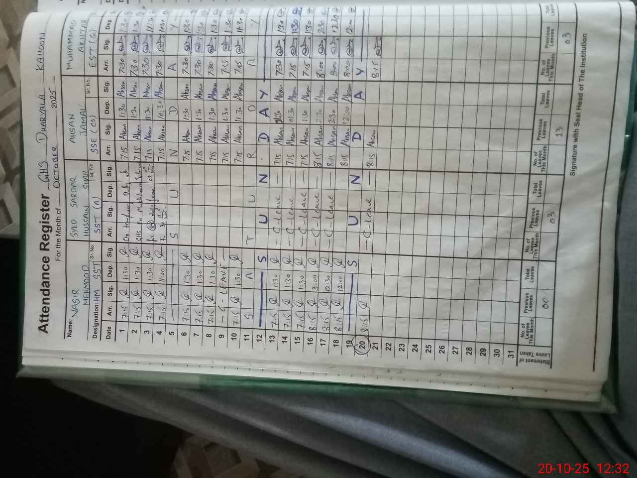 | 37**** | Sy**** Sa**** Hu**** Sh**** | SST | Regular | 0 | 0 | 0 | 0 | 0 | 0 | 0 | 0 | 0 | Casual |