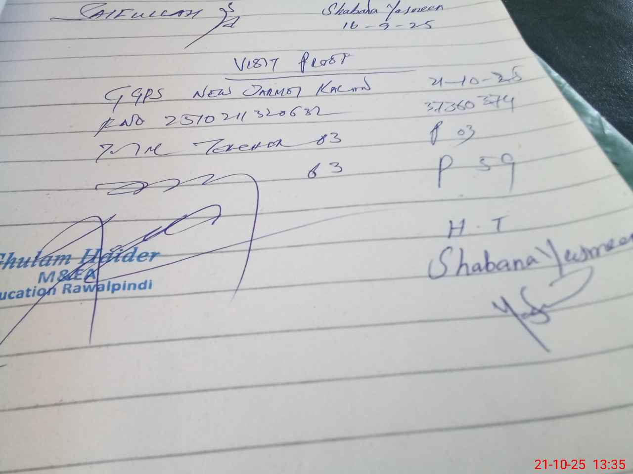 | Name: Sh**** Ya**** Designation: (School Headmaster's/Headmistress's) PTC/JV Phone/Cell Number: 03**** |
