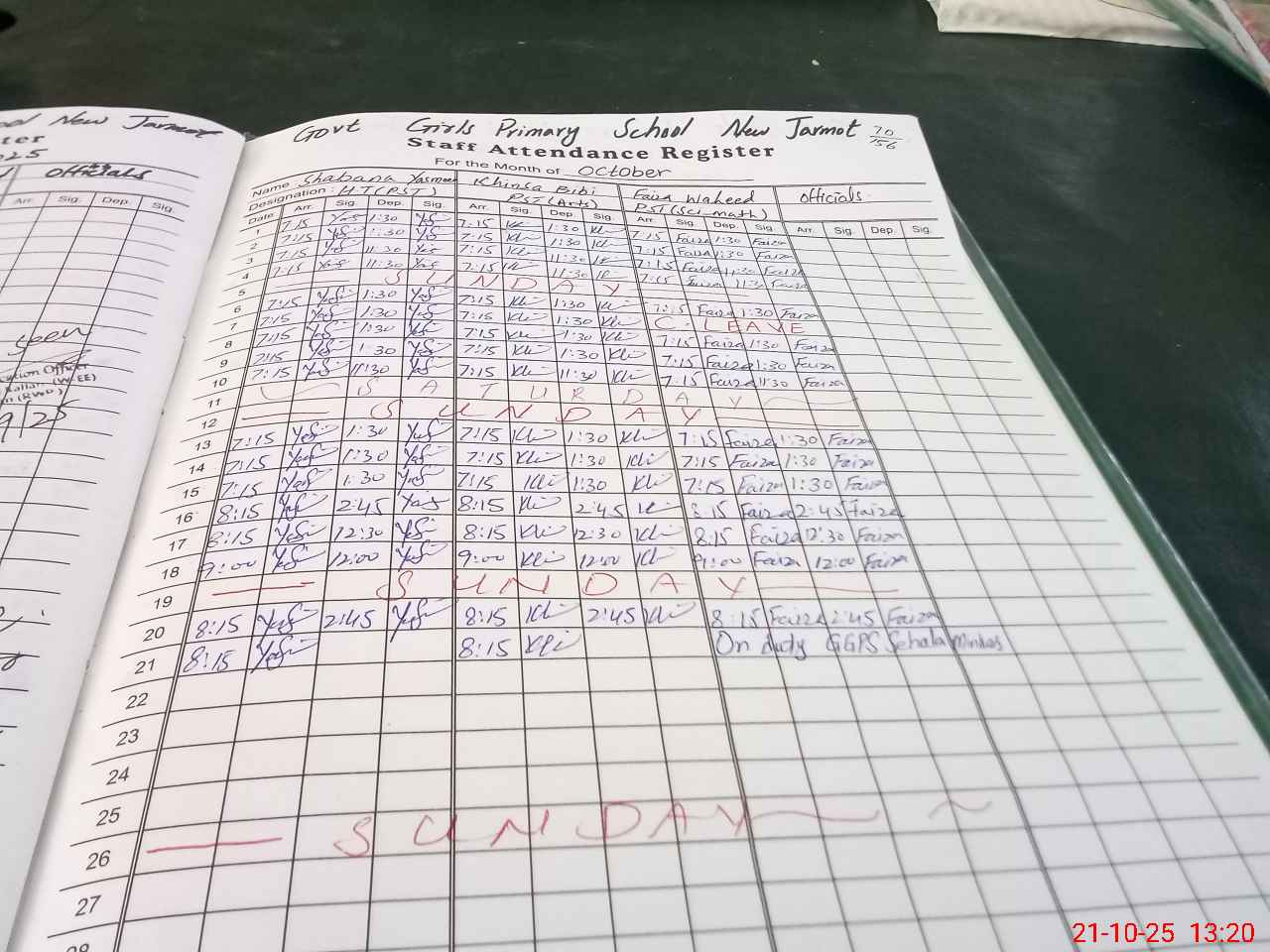 | Leave | Duty | Absent | Maternity | Medical | Ex- Pak |