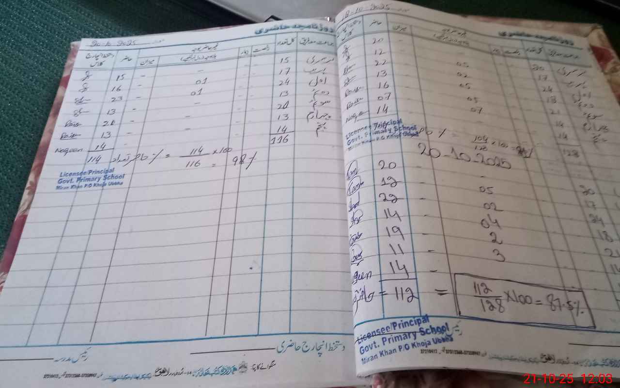 | Remarks (Use Separate Page if Required): Head Teacher Name Sana Hussain Students Present 115 School was handed over to paraivate 19 June 2025 | |||||