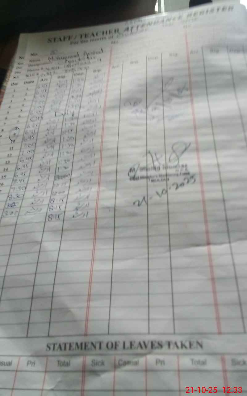 | Name: Ro**** Sh**** Designation: (School Headmaster's/Headmistress's) SST Phone/Cell Number: 03**** |