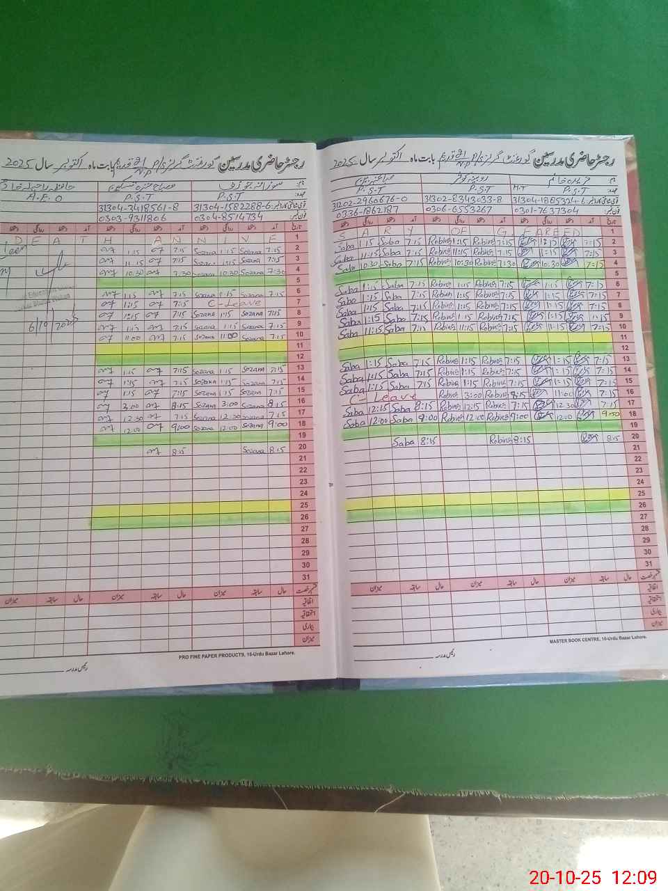 | CNIC | Full Name | Designation | R/C | Absence During Last Calender Month |