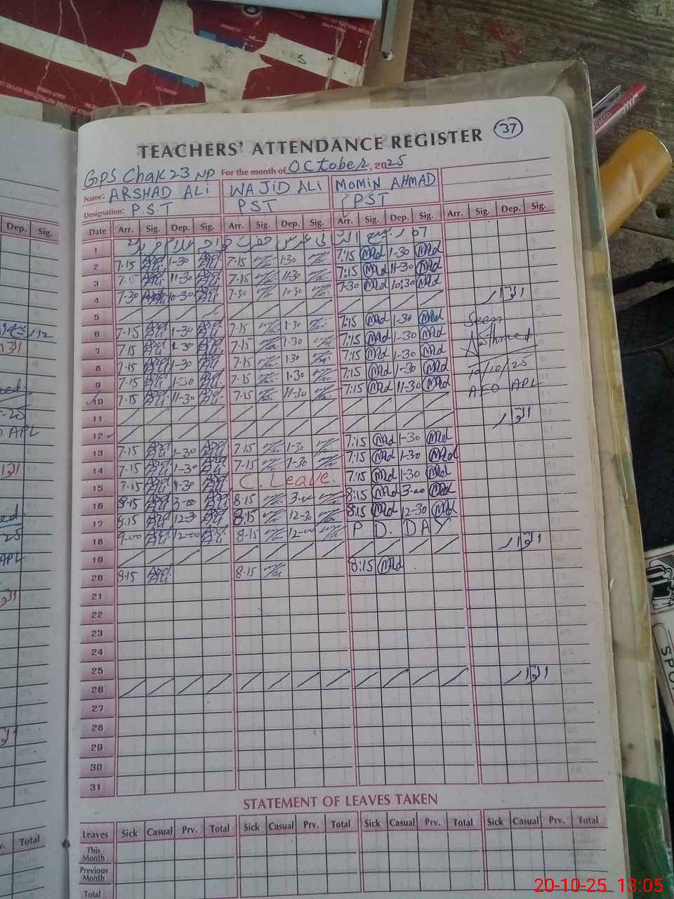 | Name: AR**** AL**** Designation: (School Headmaster's/Headmistress's) PST Phone/Cell Number: 03**** |