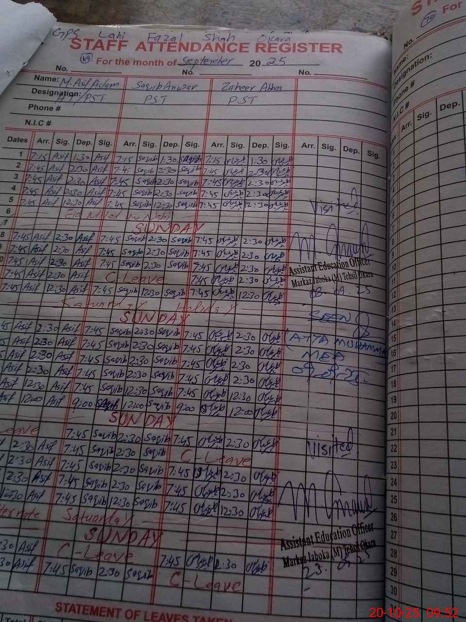 | Name: Mu**** As**** Designation: (School Headmaster's/Headmistress's) PST Phone/Cell Number: 03**** |