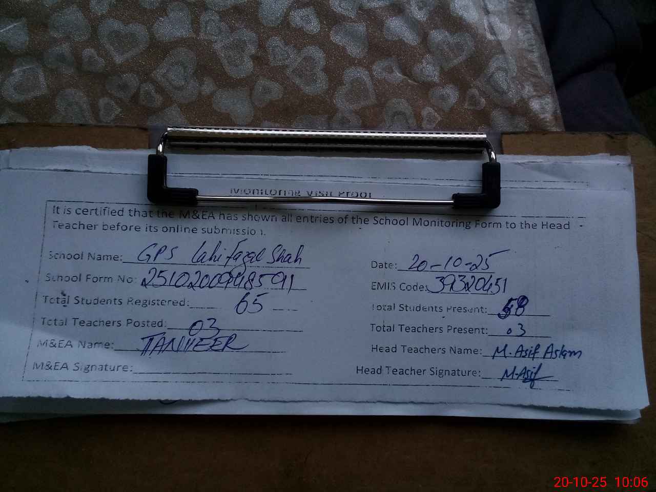 | EMIS Code: 39320451 | Name of School: GPS LAHI FAZAL SHAH | |||