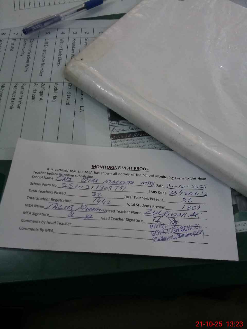 | EMIS Code: 35420012 | Name of School: GHS QILA MASSETAH MURIDKE | |||