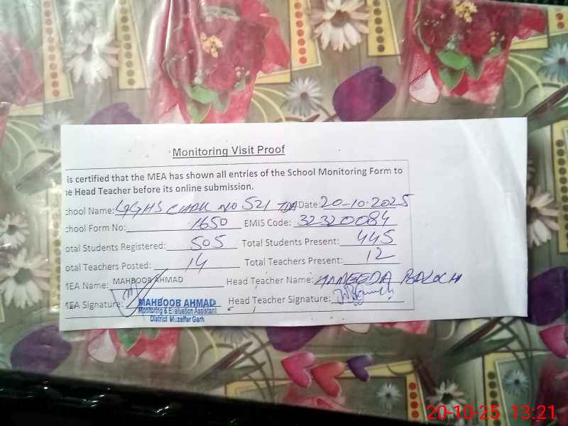 | EMIS Code: 32320084 | Name of School: GGHS CHAK NO. 521/TDA | |||