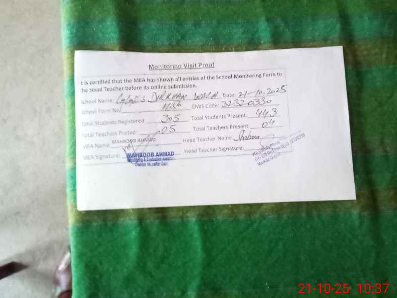 | EMIS Code: 32320330 | Name of School: GGES DIRKHAN WALA | |||