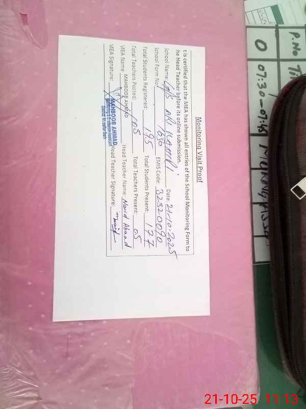| EMIS Code: 32320090 | Name of School: GPS ARI KHAIRI | |||