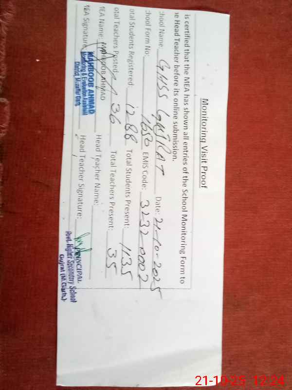 | EMIS Code: 32320002 | Name of School: GHSS GUJRAT | |||
