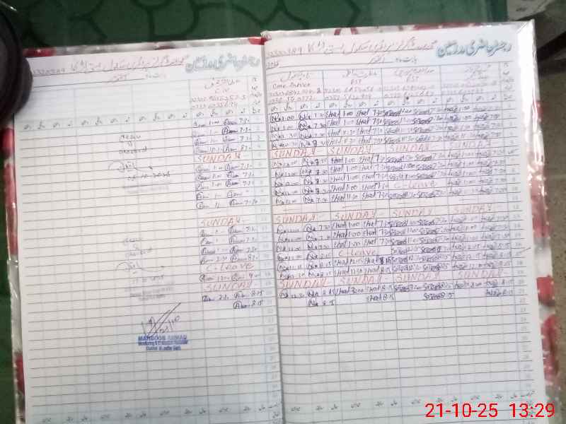 | CNIC | Full Name | Designation | R/C | Absence During Last Calender Month |
