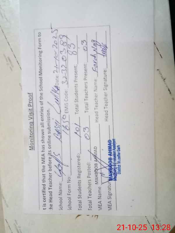 | Certified that this School was Inspected by the Undersigned MEA/DMO Today and the Information Stated Above is as Per Record. | |||||