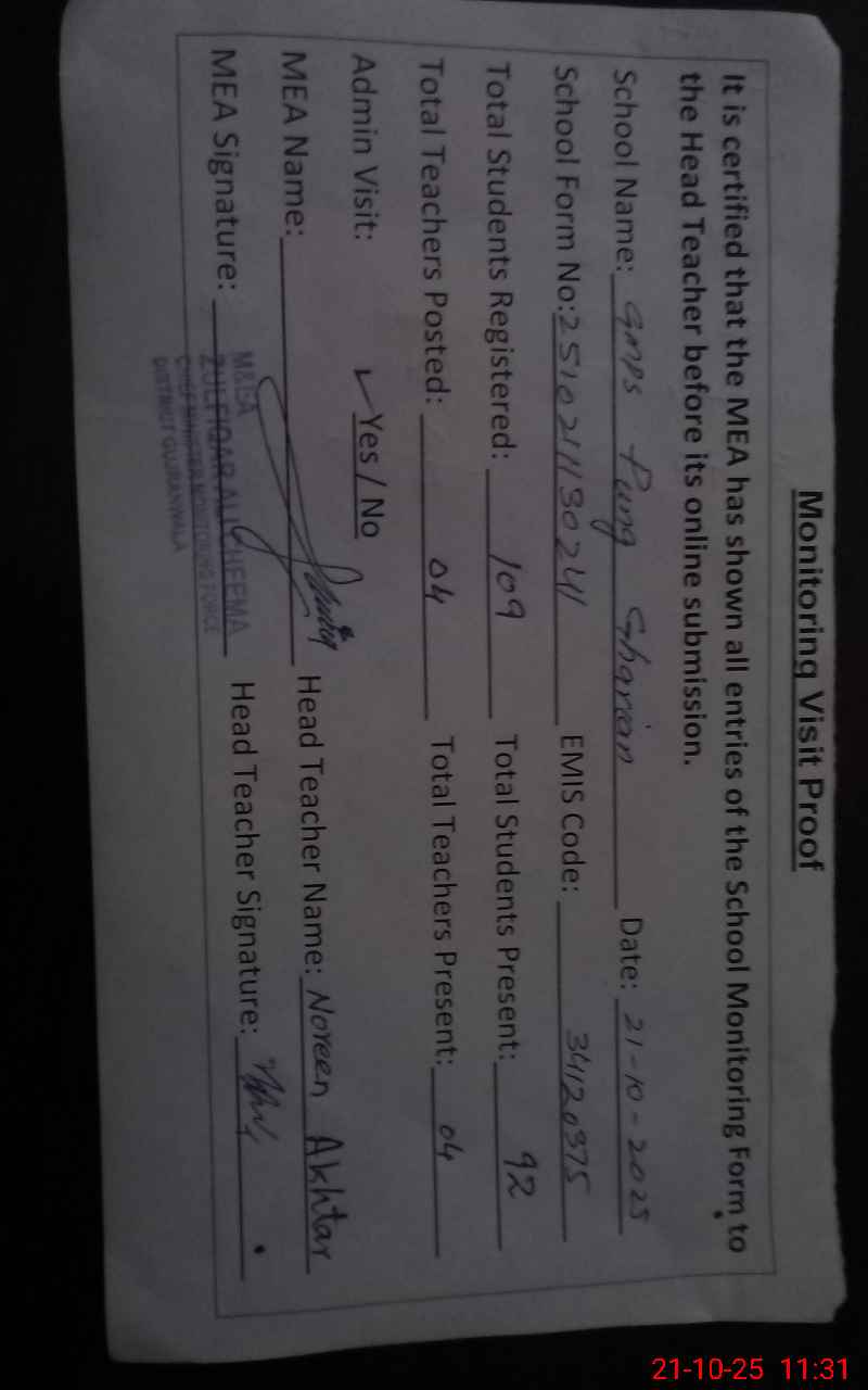 | EMIS Code: 34120375 | Name of School: GMPS PUNG GHARIAN | |||