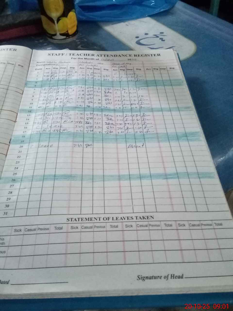 | 37**** | Ik**** UlHa**** | 1 | 1 | 0 | 0 | 0 | 0 | 0 | 0 | 0 | 0 | 0 | Absent (Un-Authorized) |