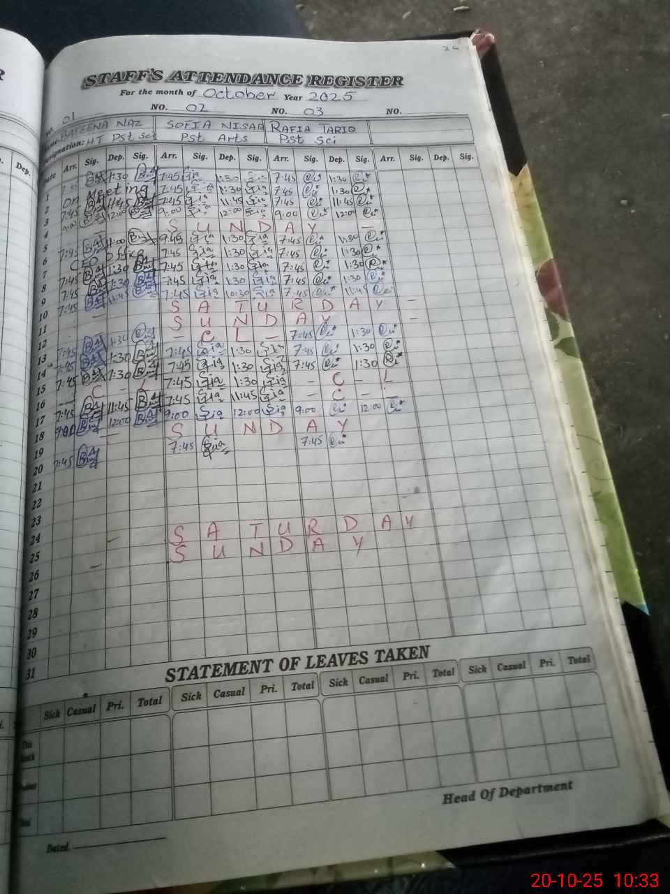 | Leave | Duty | Absent | Maternity | Medical | Ex- Pak |