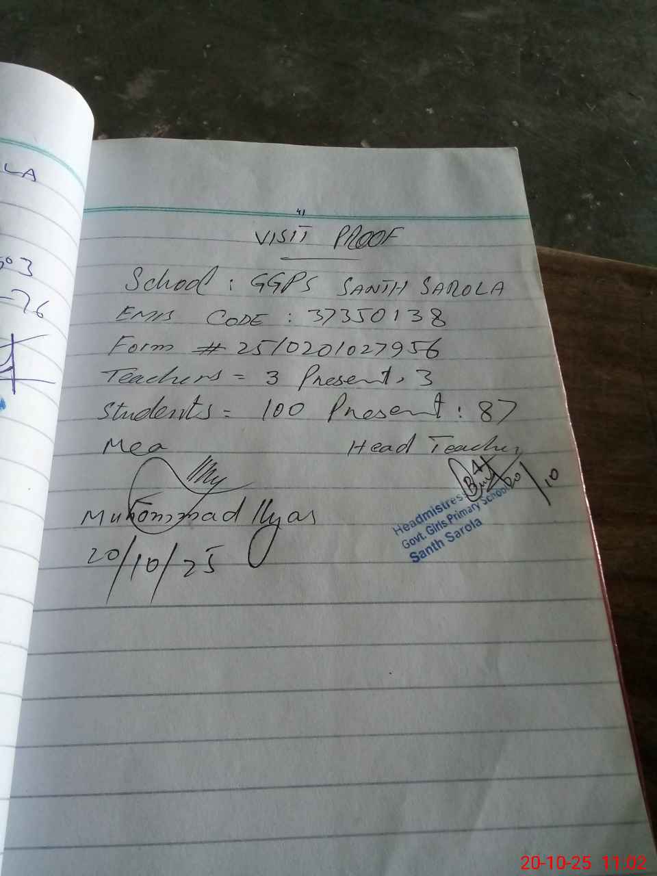 | EMIS Code: 37350138 | Name of School: GGPS SANTH SAROLA | |||