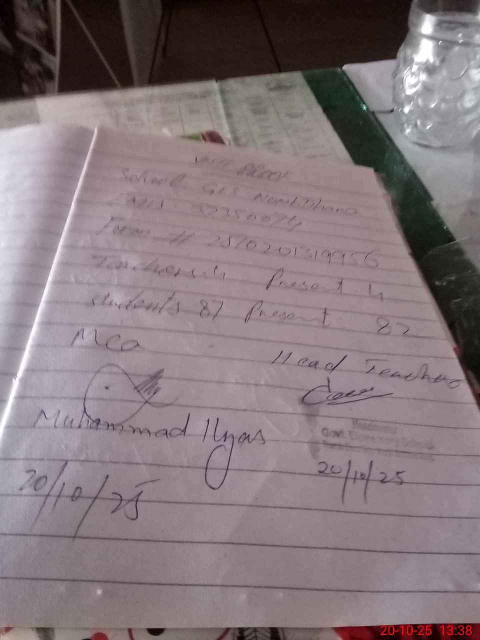 | Attendance Register | Head Teacher | MEA with School | Visit Proof |