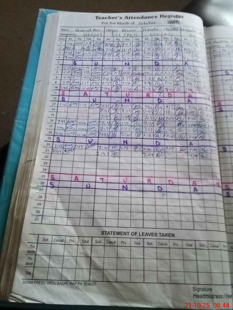 | Leave | Duty | Absent | Maternity | Medical | Ex- Pak |