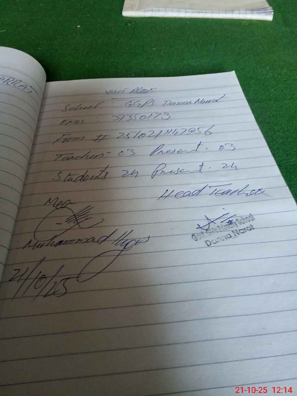 | Attendance Register | Head Teacher | MEA with School | Visit Proof |