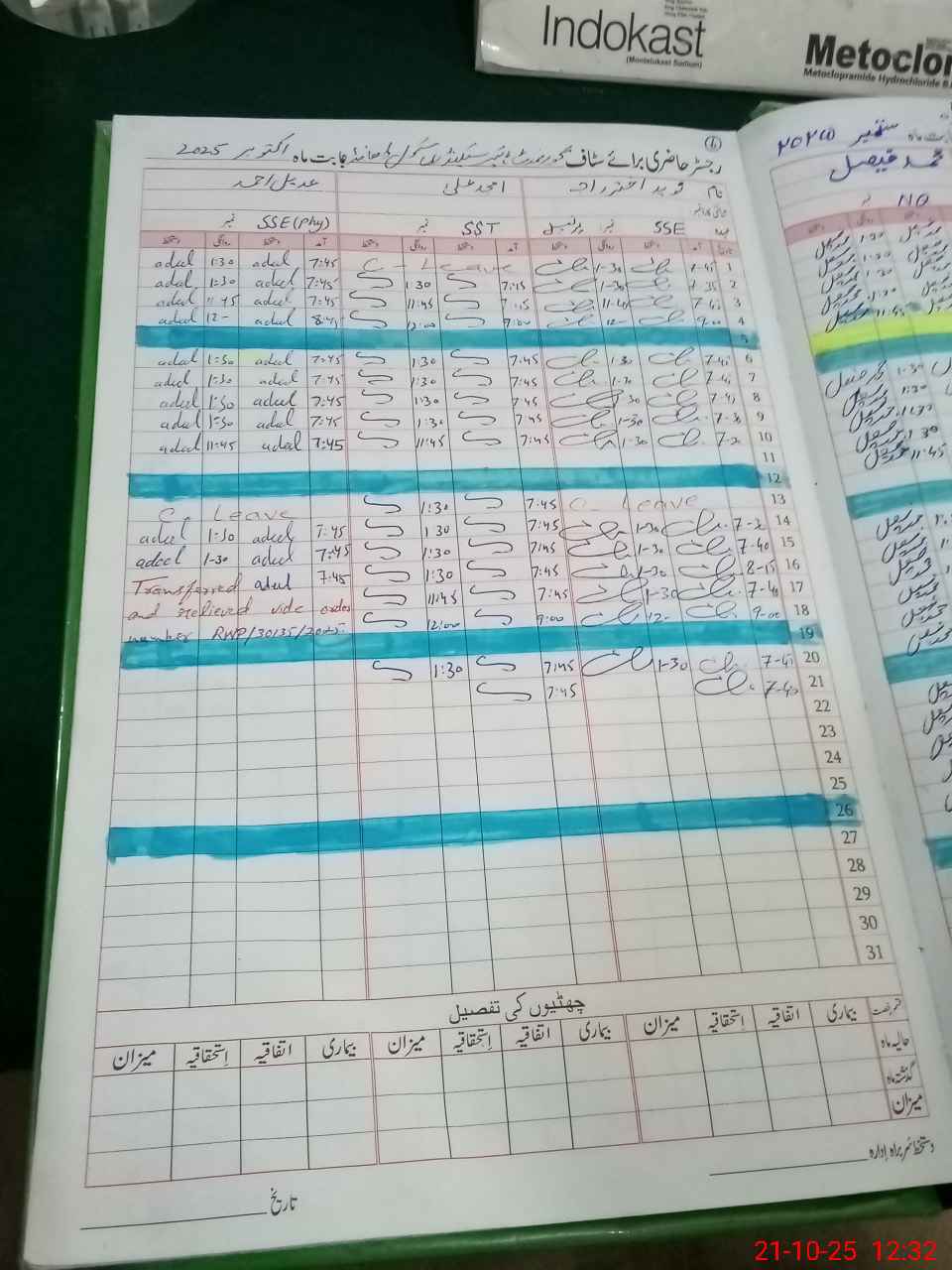 | Leave | Duty | Absent | Maternity | Medical | Ex- Pak |