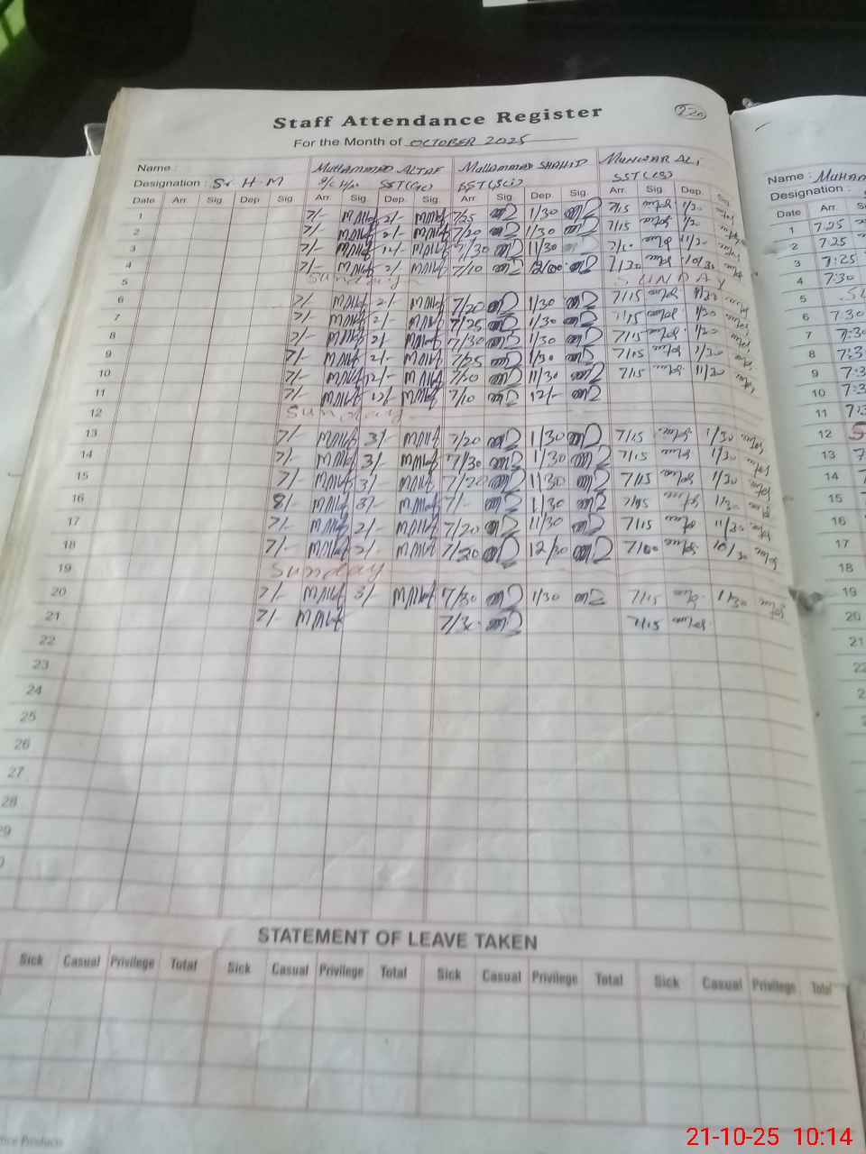 | 36**** | Mu**** Sh**** | SST | Regular | 0 | 0 | 0 | 0 | 0 | 0 | 0 | 0 | 0 | Exam Duty |