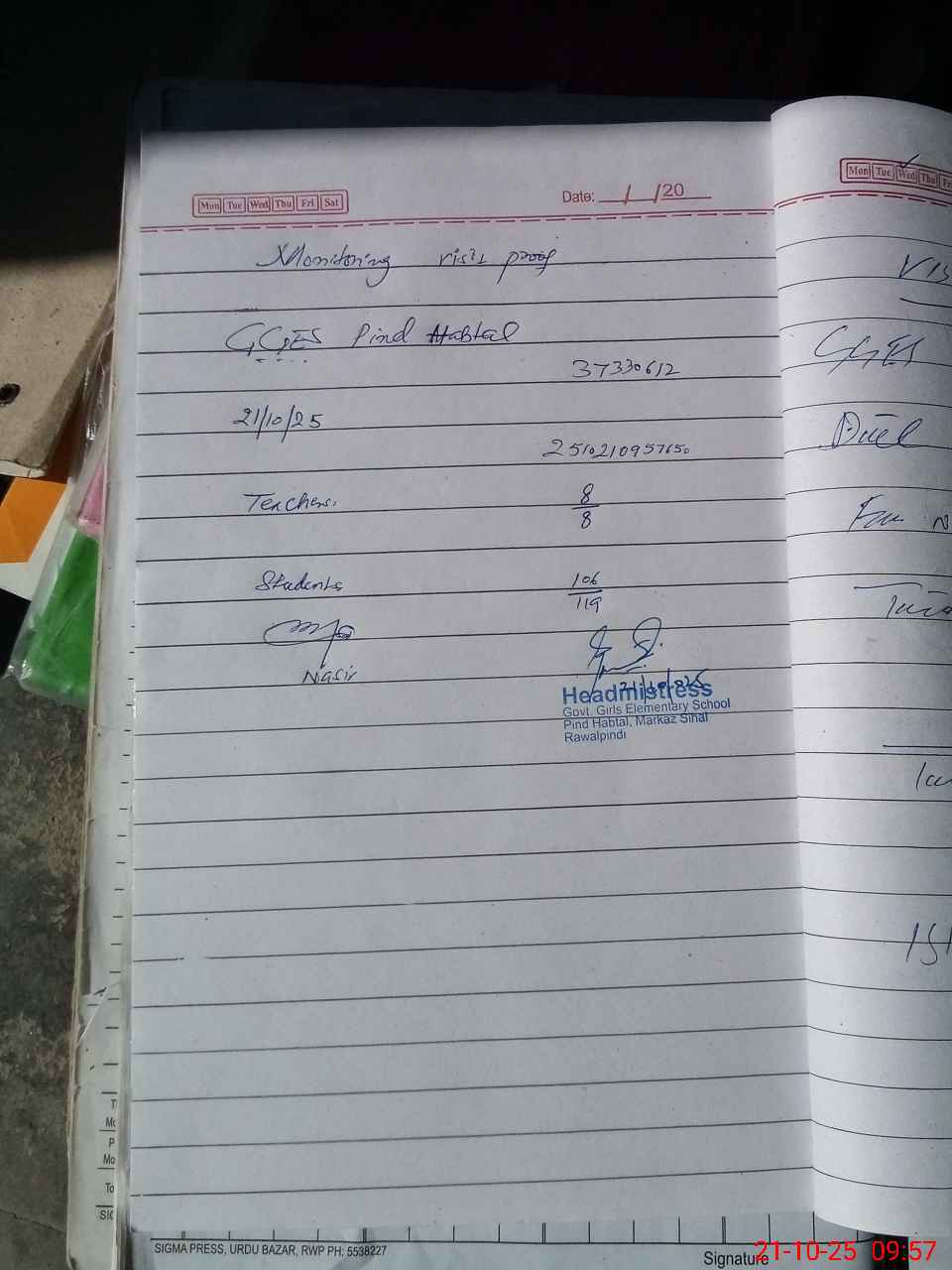 | Attendance Register | Head Teacher | MEA with School | Visit Proof |
