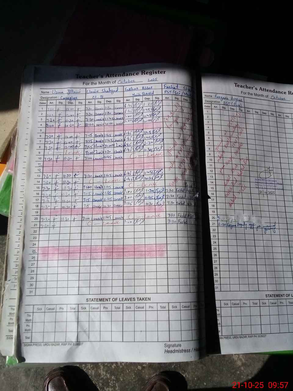 | Leave | Duty | Absent | Maternity | Medical | Ex- Pak |
