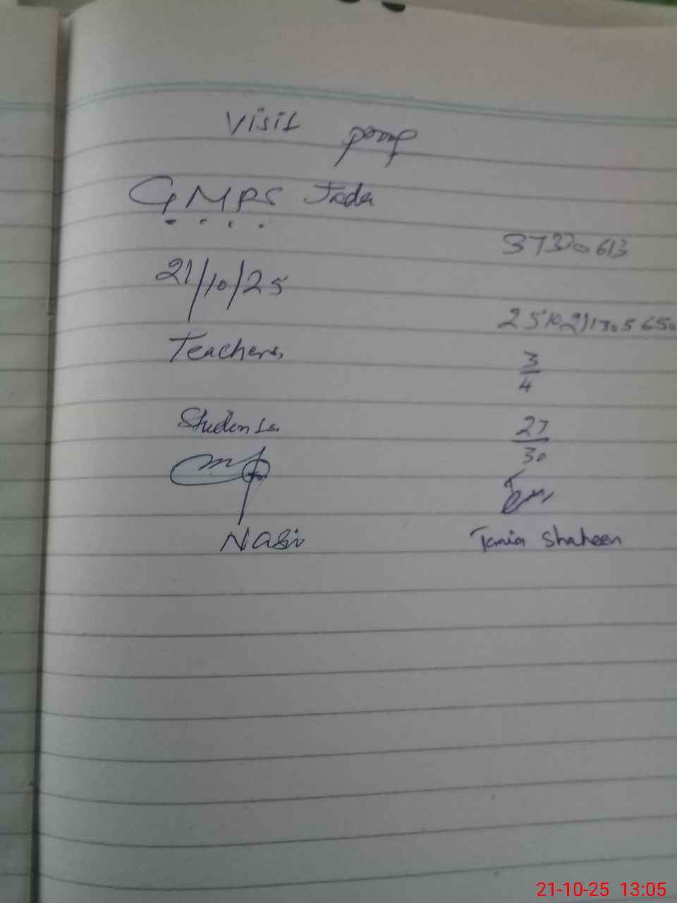 | Attendance Register | Head Teacher | MEA with School | Visit Proof |