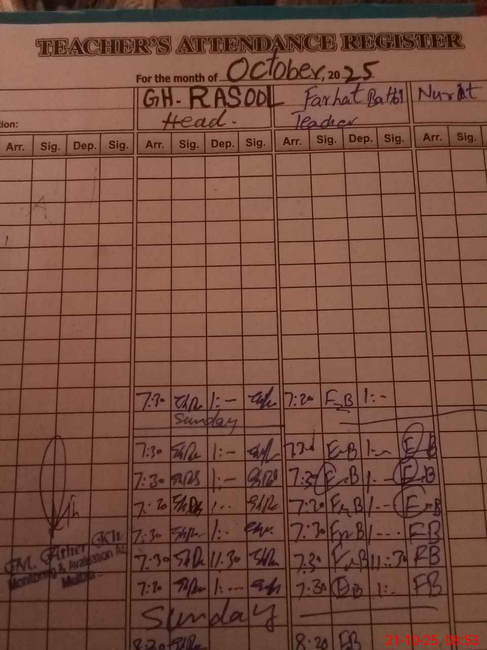 | Name: Gh**** Ra**** Designation: (School Headmaster's/Headmistress's) HEADMASTER Phone/Cell Number: 03**** |
