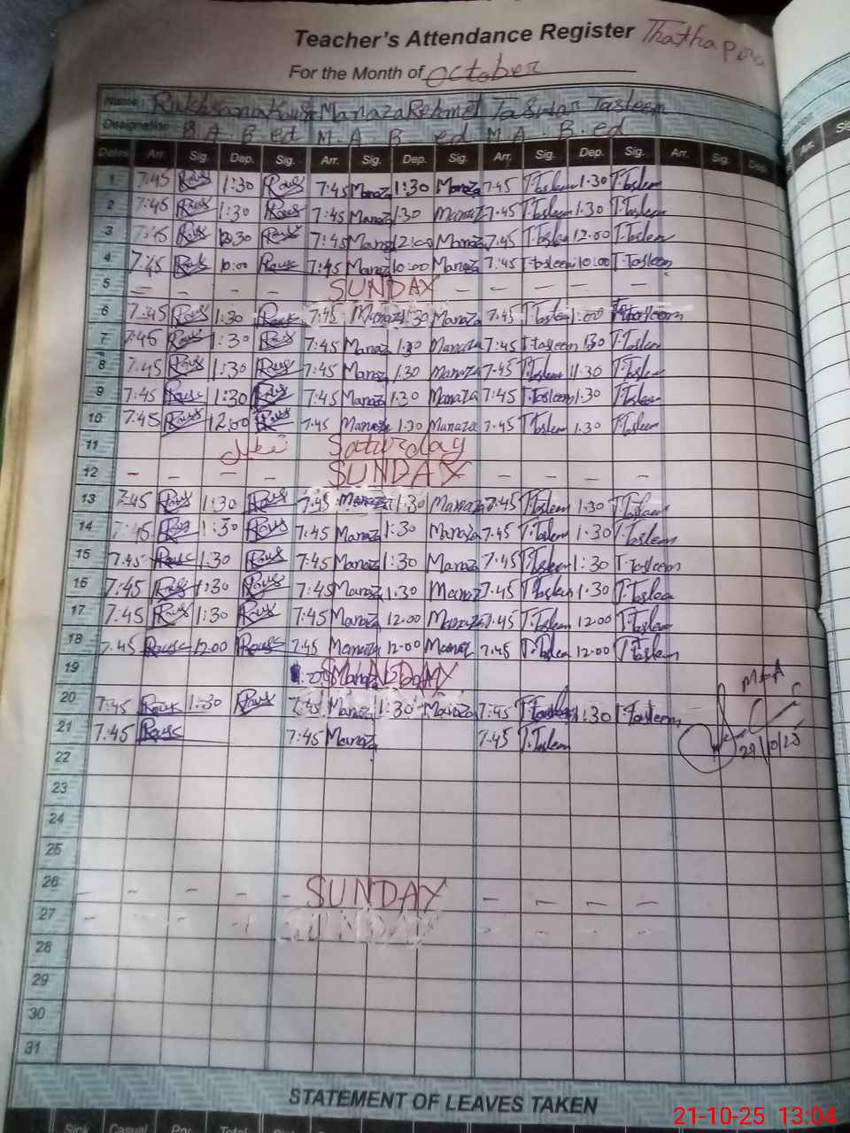 | Name: RU**** Designation: (School Headmaster's/Headmistress's) PST Phone/Cell Number: 03**** |