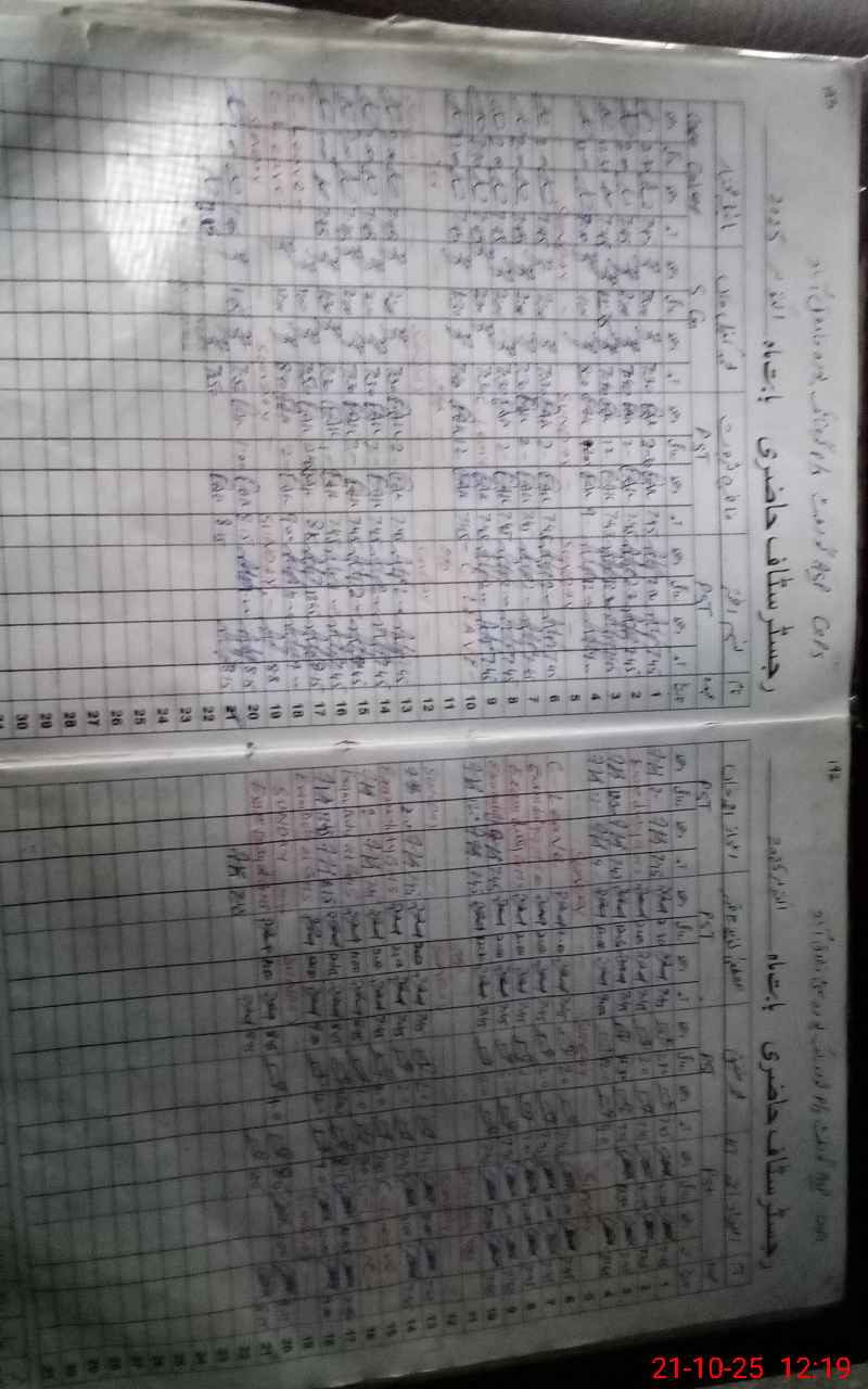 | CNIC | Full Name | Designation | R/C | Absence During Last Calender Month |