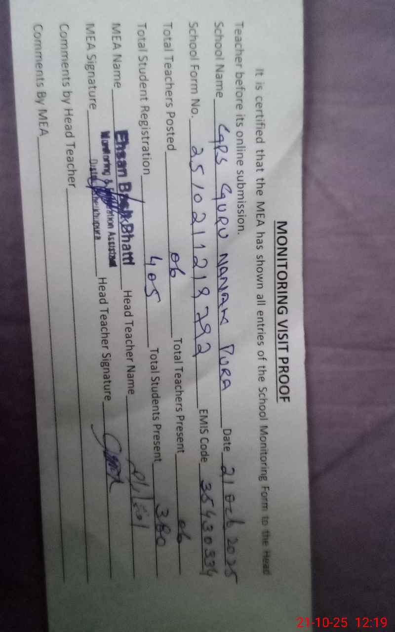 | EMIS Code: 35430334 | Name of School: GPS GURU NANAK PURA | |||