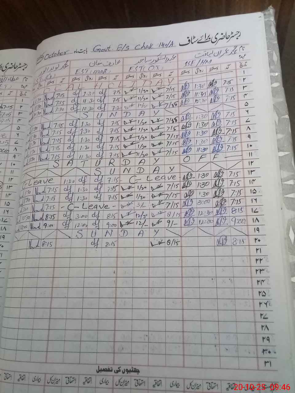 | 31**** | Sa**** Ul**** Kh**** | PST | Regular | 2 | 0 | 0 | 0 | 0 | 0 | 0 | 0 | 2 | Casual |
