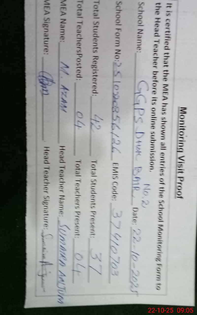 | EMIS Code: 37410703 | Name of School: GGPS DHOK BAIR NO.2 | |||