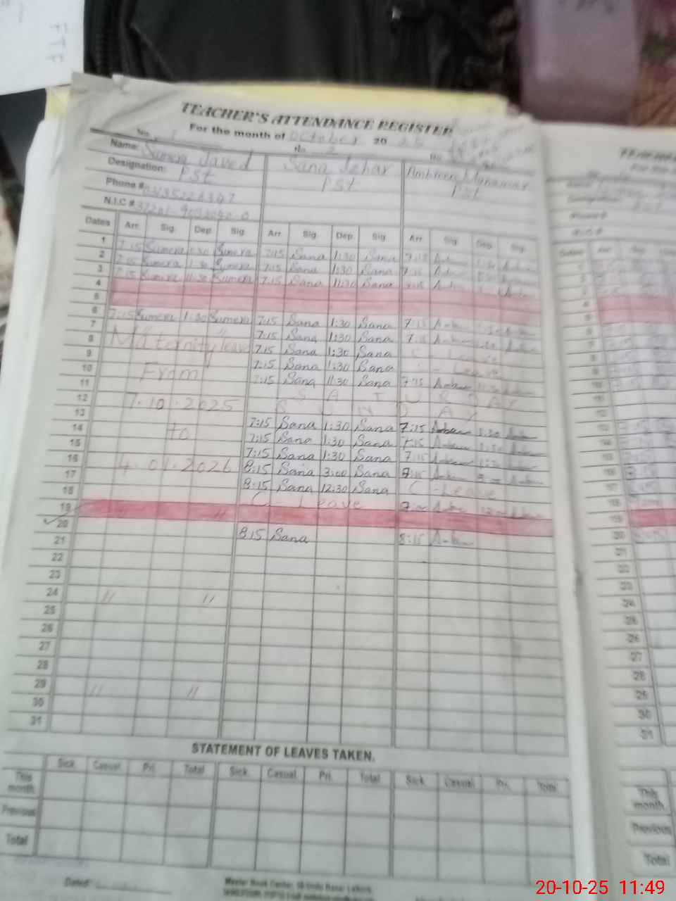 | 37**** | Su**** Ja**** | PST | Regular | 0 | 0 | 0 | 0 | 0 | 0 | 0 | 0 | 0 | Maternity |