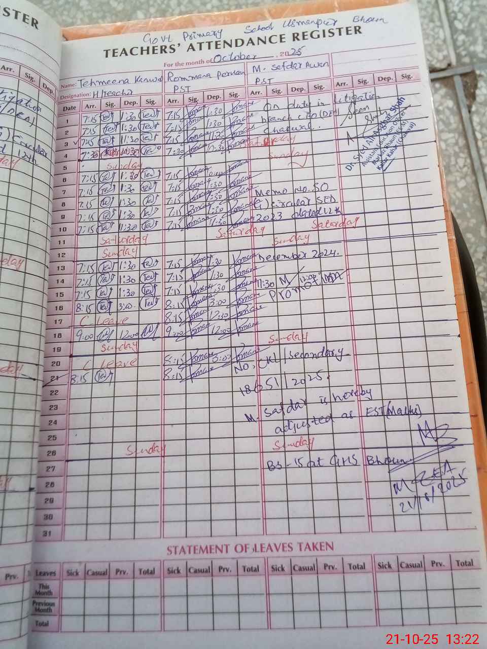 | Name: Te**** Ka**** Designation: (School Headmaster's/Headmistress's) PST Phone/Cell Number: 03**** |