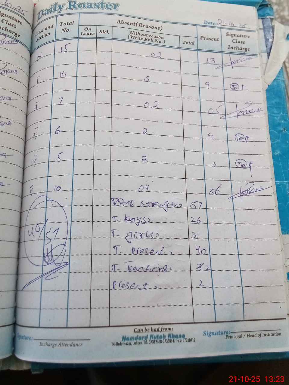 | No. of Students Present - Female | 0 | 0 | 6 | 5 | 5 | 1 | 3 | 2 | 22 | |||||||