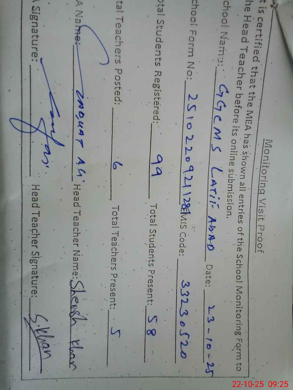 | EMIS Code: 33230520 | Name of School: GGCMS LATIF ABAD (GERI WALA) | |||