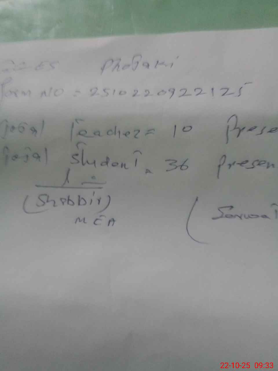 | Monitoring Date: 22-10-2025 | Start Time: 22-10-2025 08:42 AM | End Time: 22-10-2025 09:34 AM | Name of MEA: Sh**** Hu**** | |