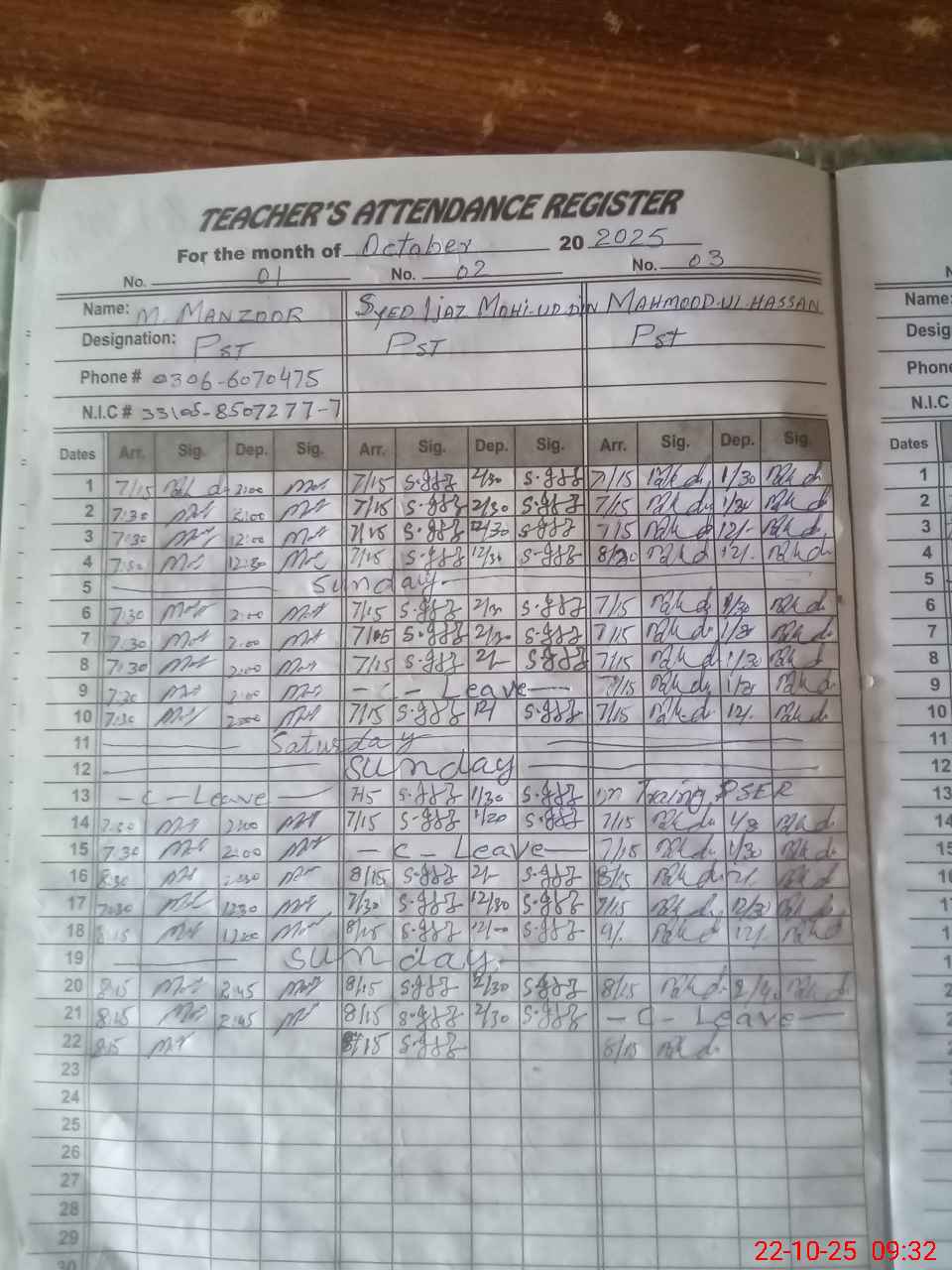| Name: HA**** MA**** HU**** Designation: (School Headmaster's/Headmistress's) PST Phone/Cell Number: 03**** |
