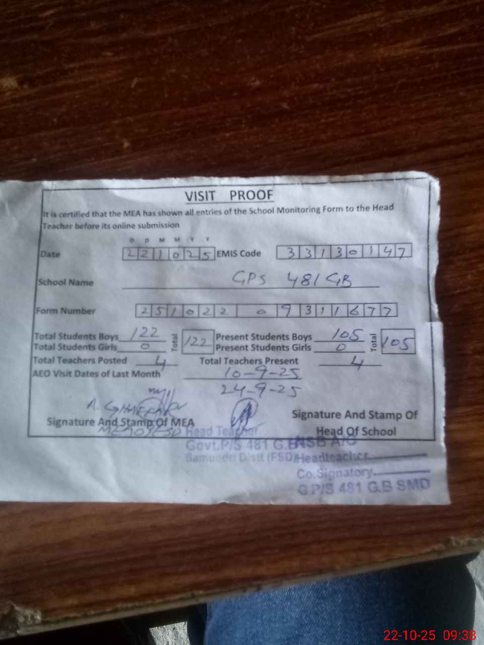 | EMIS Code: 33130147 | Name of School: GPS 481 GB | |||