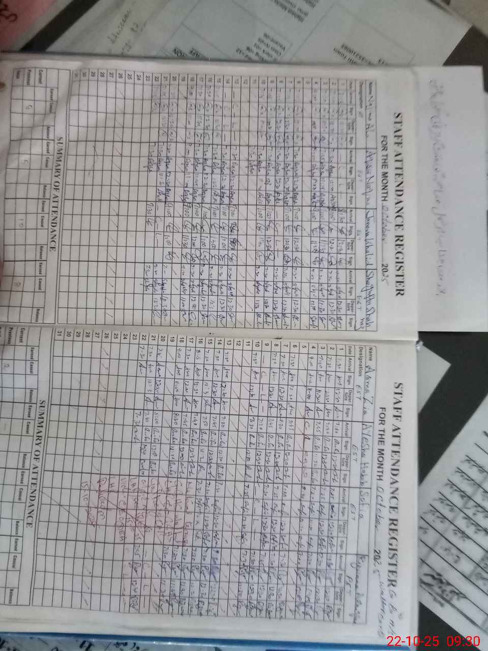 | CNIC | Full Name | Designation | R/C | Absence During Last Calender Month |
