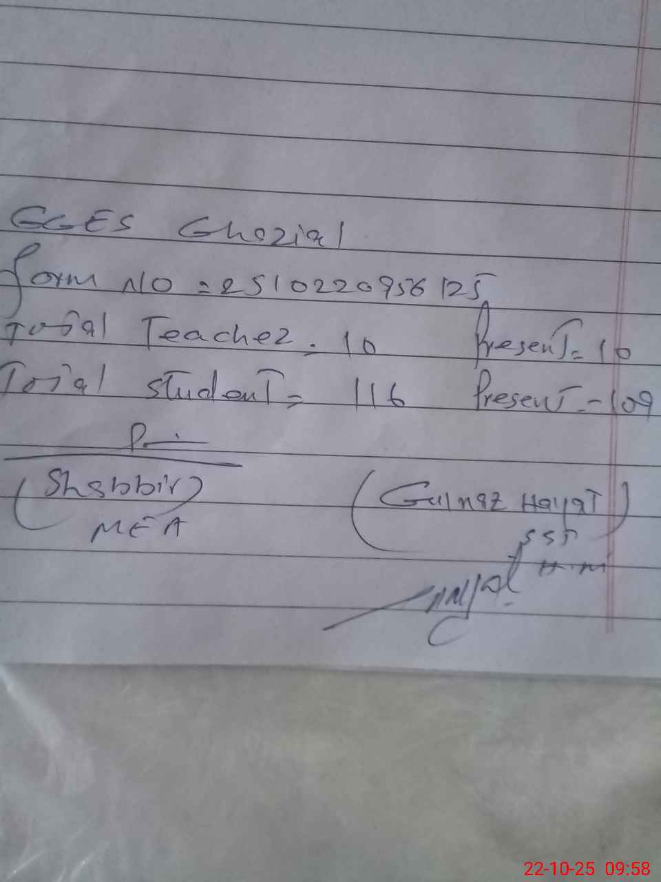 | Name: GU**** HA**** Designation: (School Headmaster's/Headmistress's) HEADMISTRESS Phone/Cell Number: 03**** |