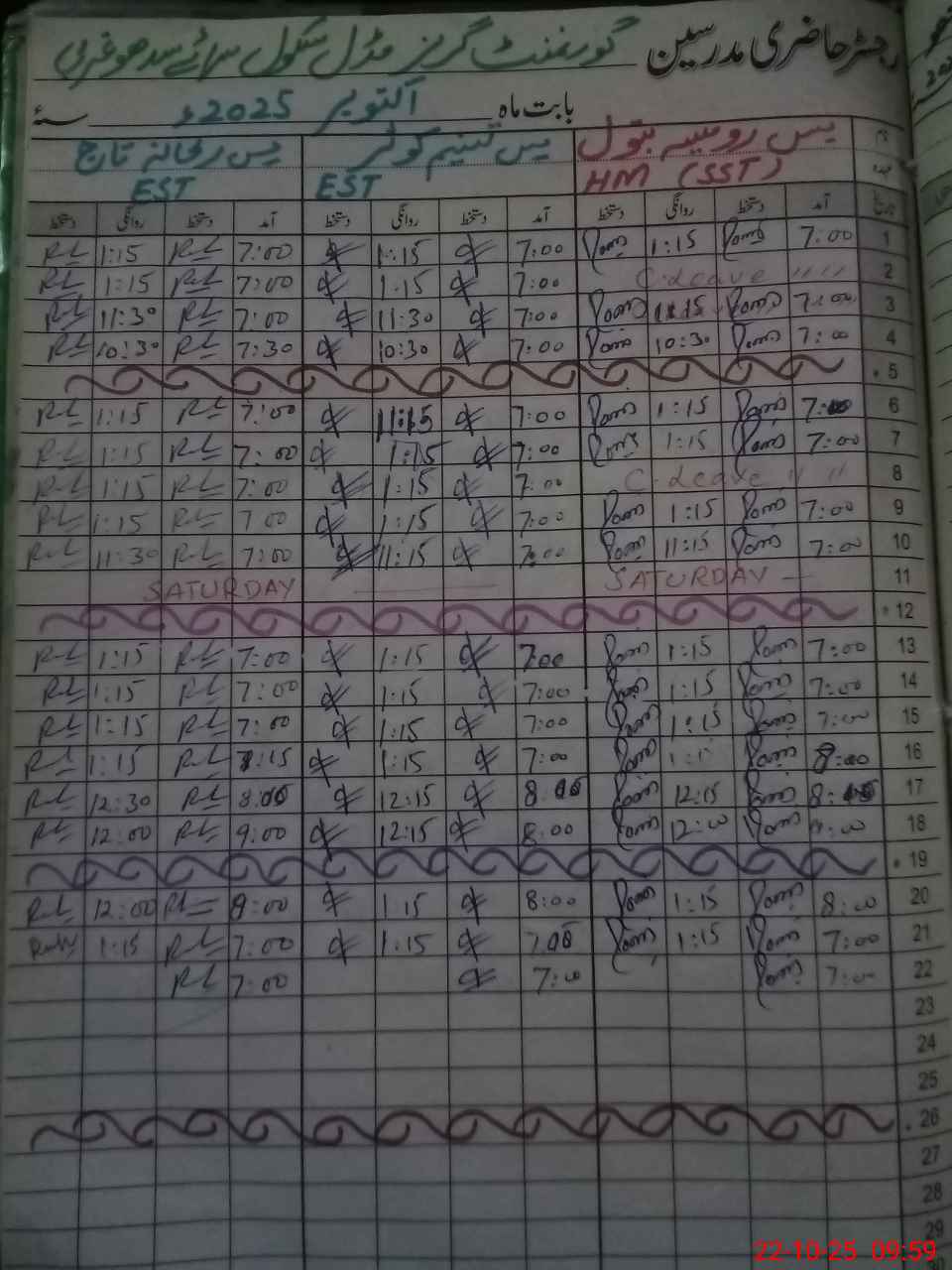 | CNIC | Full Name | Designation | R/C | Absence During Last Calender Month |