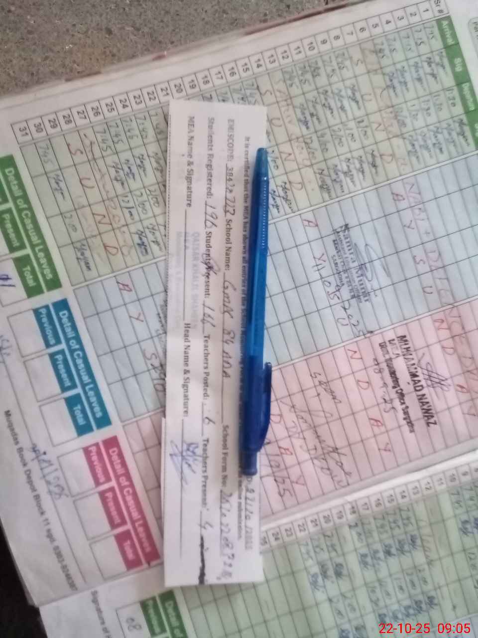 | Attendance Register | Head Teacher | MEA with School | Visit Proof |