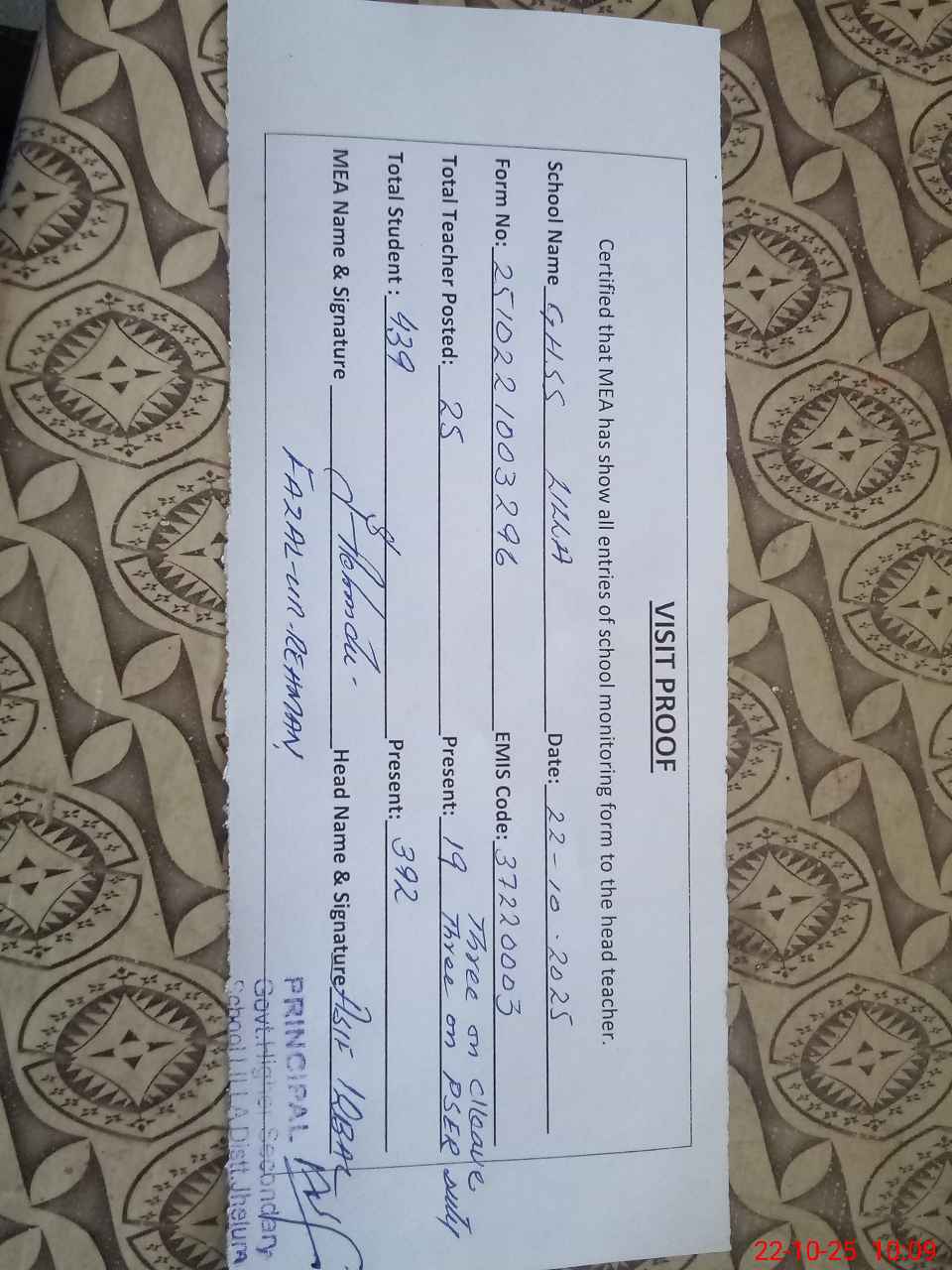 | Certified that this School was Inspected by the Undersigned MEA/DMO Today and the Information Stated Above is as Per Record. | |||||